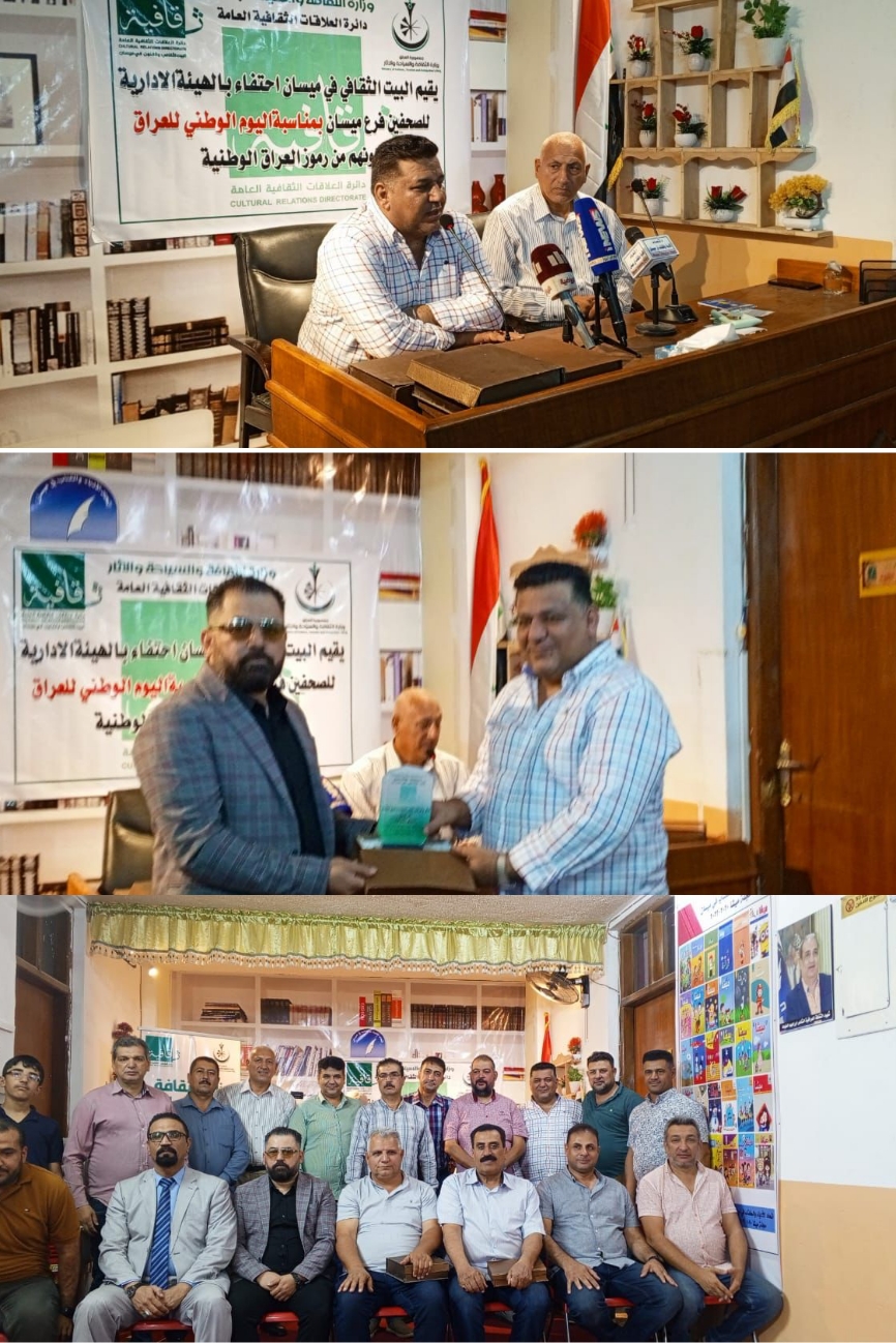 أخبار العراق  البيت الثقافي يكرم رئيس واعضاء الهيئة الادارية لنقابة الصحفيين في ميسان بمناسبة اليوم الوطني للعراقكرم البيت الثقافي في ميسان التابع الى وزارة الثقافة، رئيس واعضاء الهيئة الادارية لفرع نقابة الصحفيين العراقيين في المحافظة ،… أكمل القراءة »