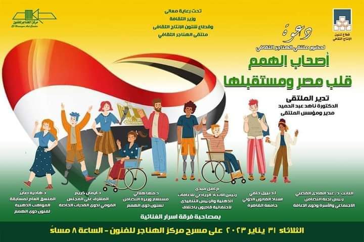 ملتقى الهناجر ينظم لقاء “أصحاب الهمم .. قلب مصر ومستقبلها” .. الثلاثاء القادم
