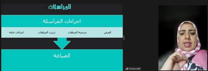 حول فاعلية المراسلات وإعداد المذكرات حاضرت الأستاذة هيام عبد الحميد سعفان مدير عام بإدارة المراجعة ثاني محاضرات ورشة فاعلية التواصل والمراسلات وإعداد التقارير الذي تقدمه الإدارة المركزية لإعداد القادة الثقافيين برئاسة الدكتورة منال علام عبر تقنية البث المباشر