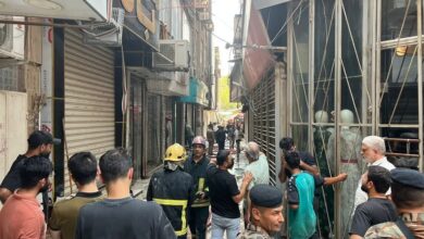 فرق الدفاع المدني تُحكم سيطرتها على حريق في بناية تجارية متعددة الطوابق في منطقة الشورجة وسط بغداد.
