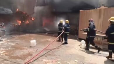 الأبطال من رجال الدفاع المدني في جانب بغداد الرصافة يخمدون حادث حريق اندلع داخل سوق للنجارة بمنطقة مدينة الصدر شرقي…