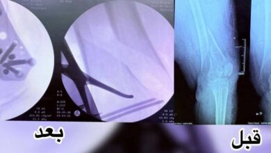 اجراء عملية نوعي لتثبيت كسر مهشم اسفل عظم الفخذ الايسر لمريضة بعمر (45) عام في مستشفى الكرخ العام