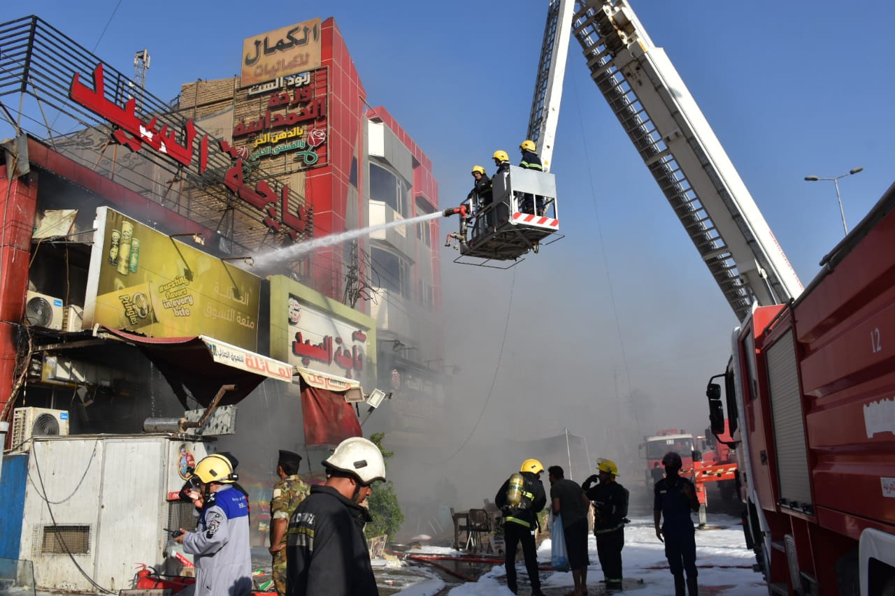حيث استنفرت فرق الدفاع المدني في جانب بغداد الكرخ لتمنع امتداد الحريق إلى الشوارع القريبة المجاورة ودفعت بثقلها من عجلات الإطفاء التخصصية والسانده لتكافح النيران المشتعلة داخل الأسواق من أربعة محاور مع زج عجلة السلم لتكافح الحريق من الأعلى إلى الأسفل وتحقق المحور الخامس وتحكم سيطرتها الكاملة على الحادث دون تسجيل إصابات بشرية مع تحجيم الأضرار المادية.