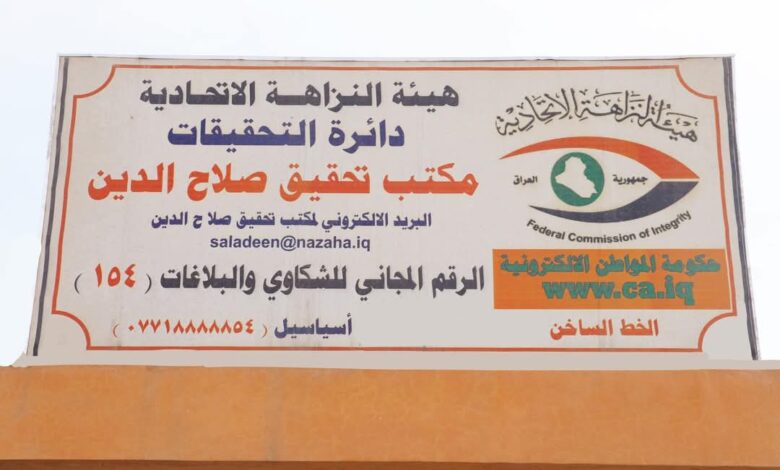 النزاهة: تنفيذ أوامر ضبط وقبض لموظفين ببلدية وتقاعد صلاح الدين