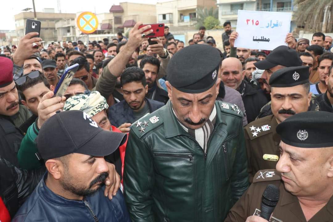 وأشار قائد الشرطة في كلمته مع المتظاهرين إلى أن من واجبنا توفير الحماية والحفاظ على الأمن العام وإننا مع المطالبة بالحقوق المشروعة التي كفلها الدستور وفق السياقات القانونية ، مؤكداً انه سيقوم بإيصال مطالبهم الى الجهات المعنية .