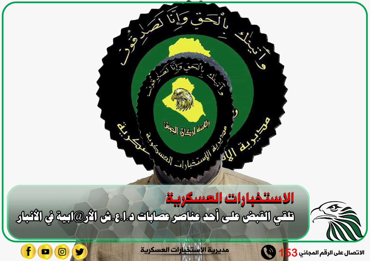 بعملية استباقية وجهد استخباري مميز ووفقاً لمعلومات استخبارية دقيقة لشعبة الفرقة الخامسة التابعة الى مديرية الاستخبارات العسكرية وبالتعاون مع استخبارات وقوة من اللواء الثامن عشر، تم نصب كمين محكم في سيطرة ١٦٠ كيلو وعلى أثرهِ ألقي القبض على احد الارهابيين المطلوبين للقضاء وفق احكام المادة الرابعة من قانون مكافحة الارهاب في قضاء الرطبة بمحافظة الانبار والذي كان يقاتل في صفوف عصابات داعش الارهابية ضد القوات الأمنية العراقية البطلة، وقد تم تسليمه الى جهة الطلب أصولياً.