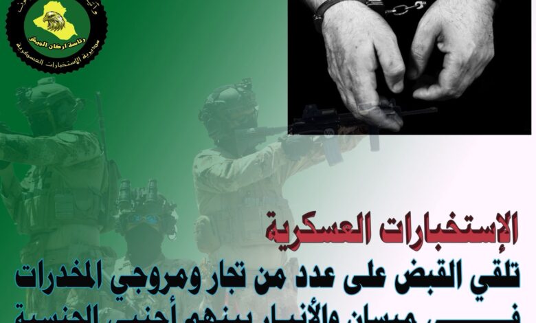الاستخبارات العسكرية تلقي القبض على عدد من تجار ومروجي المخدرات في ميسان والانبار بينهم اجنبي الجنسية