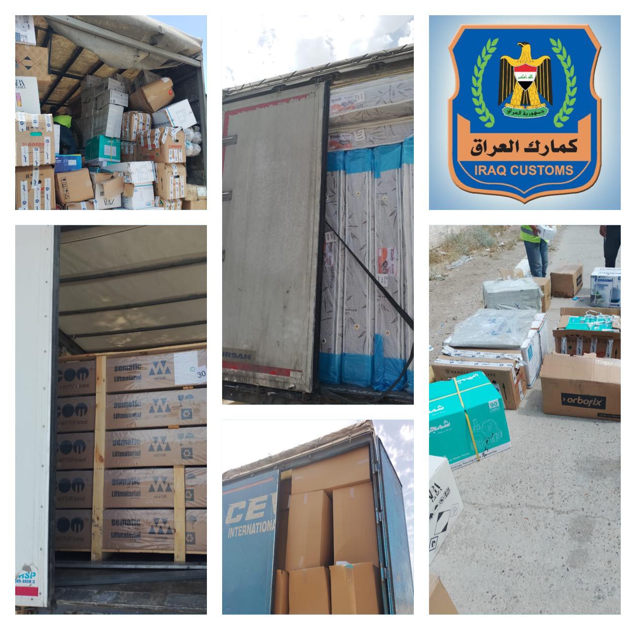 اعلنت الهيئة العامة للكمارك اليوم الثلاثاء المصادف 9 آيار 2023 عن تمكن كادر قسم التحري ومكافحة التهريب في مديرية كمرك المنطقة الوسطى من ضبط ( 10 ) شاحنات محملة بمواد متنوعة ( كهربائيات ، اجزاء مصاعد ، مستلزمات منزلية ، ادوات احتيــاطية ) مخالفة للشروط والضوابط الاستيرادية .