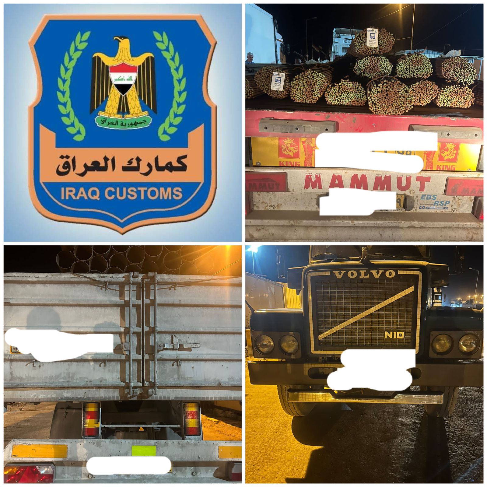 اعلنت الهيئة العامة للكمارك اليوم الثلاثاء الموافق ١١ نيسان ٢٠٢٣ عن قيام كادر مركز كمرك المنذرية الحدودي باعادة ارسالية ( انابيب معدنية ) بوزن ( ٥٧ ) طن و ( شيش تسليح ) بوزن ( ٥٥ ) طن لمخالفتها للمواصفات القياسية العراقية .
