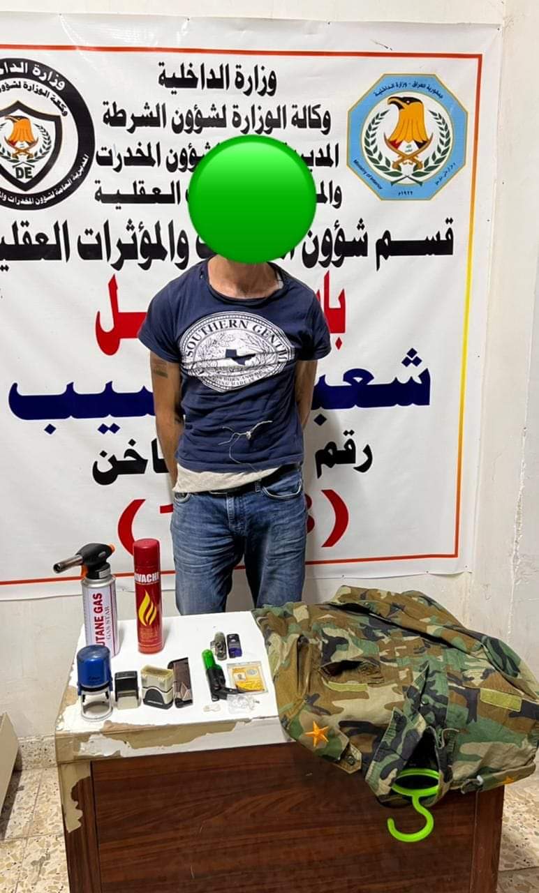 ألقت مفارز مكافحة المخدرات والمؤثرات العقلية في بابل القبض على متهم انتحل صفة ضابط في الجيش العراقي، صادر بحقه امر قبض وتحرٍ، وضبط بحوزته مادة الكريستال المخدرة وأختام مزورة وأدوات للتعاطي مختلفة الأنواع،وتم إحالته إلى القضاء لينال جزاءه العادل .