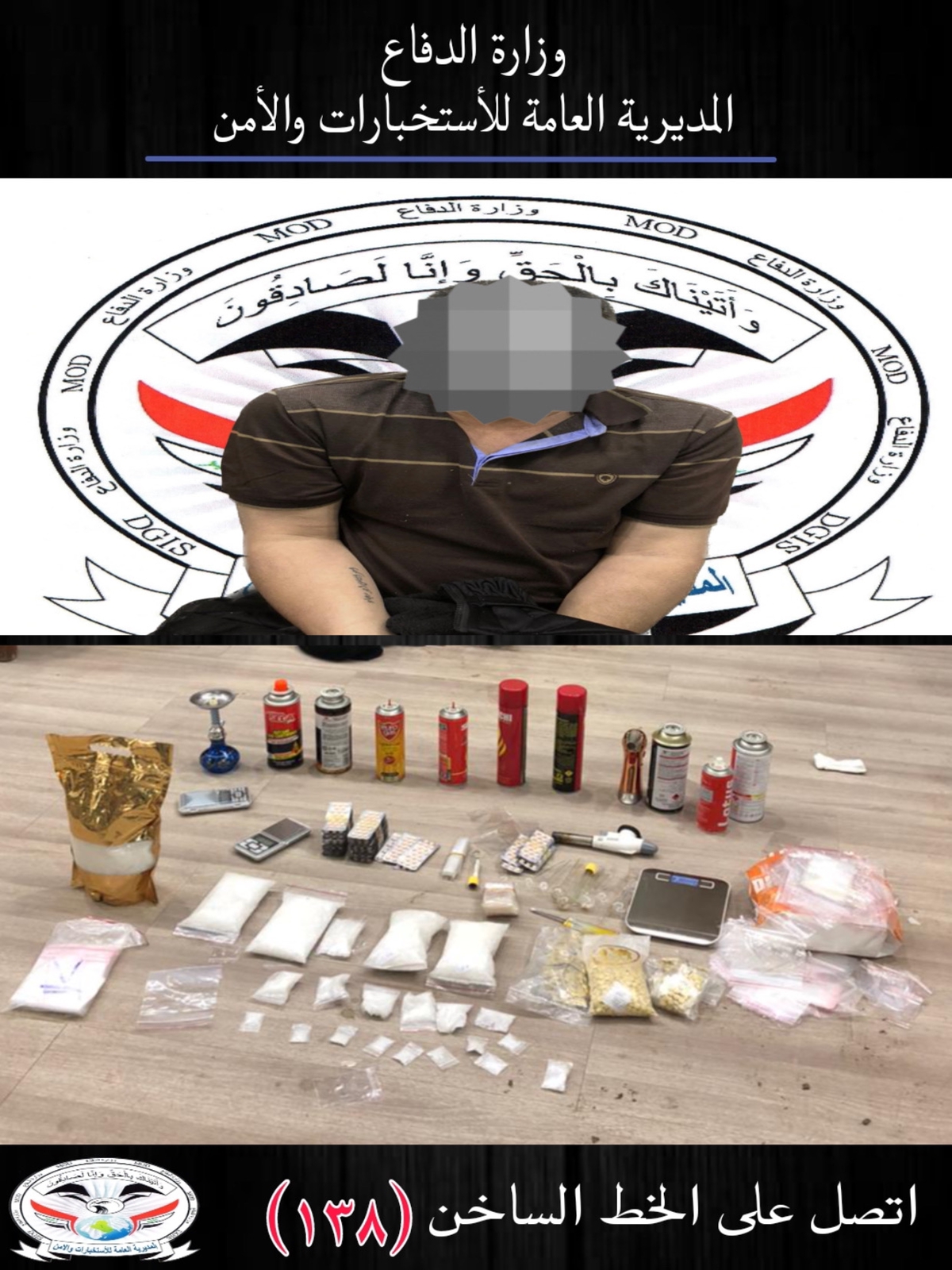 بعملية نوعية امتازت بالدقة والسرعة واستنادا الى معلومات استخبارية دقيقة تمكنت مفارز مديرية استخبارات وامن بغداد التابعة الى المديرية العامة للاستخبارات والامن بوزارة الدفاع من القبض على احد تجار المواد المخدرة والذي يعد احد اكبر موزعي ومروجي للمواد المخدرة وبحوزته (٢كيلو ) من مادة الكرستال المخدرة و(٣٠٠٠) حبة مخدرة مختلفة.