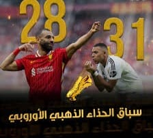 كيليان مبابي (ريال مدريد) تصدر السباق في الرمق الأخير بعد تألقه اللافت في الدوري الإسباني، مسجلًا 31 هدفًا (62 نقطة).