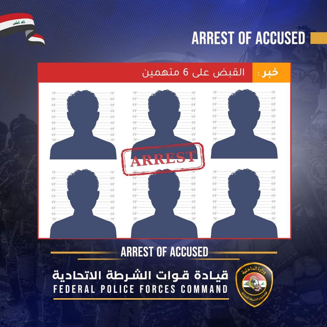 ضمن الجهود الأمنية المستمرة التي تنفذها قطعات الشرطة الاتحادية المتمثلة بالفرقة الثانية، تمكنت دوريات اللواء الخامس من استيقاف (6) عجلات نوع تريلة تحمل مادة السكائر بدون أوراق رسمية، تم إحالتها إلى الجهات المختصة، فيما تمكنت مفارز اللواء السابع والخامس بالاشتراك مع الجهد الاستخباري ومن جهاز الأمن الوطني من تنفيذ مذكرات قبض قضائية ، القي خلالها على (6) متهمين بقضايا (النصب والاحتيال، المشاجرة، التهديد) في مناطق (حي الإعلام، الدوانم الزراعي، الحرية) تم إحالتهم اصولياً إلى الجهات المختصة لإكمال الإجراءات التحقيقية والقانونية بحقهم.