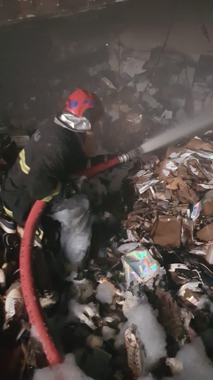 حيث طوقت فرق الدفاع المدني النيران وابعدت خطر انتشار الحريق إلى المخازن المجاورة وطوابق البناية وأنهت أعمال الإخماد والتبريد دون تسجيل إصابات بشرية مع تحجيم الأضرار المادية.