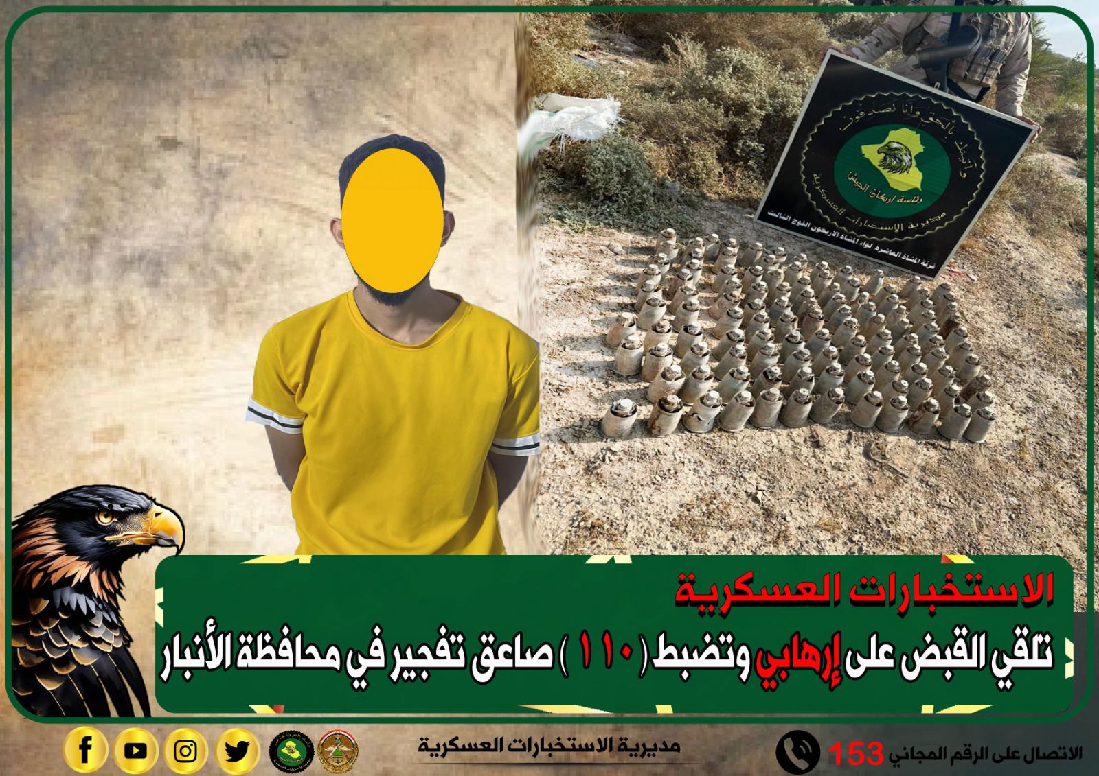 الاستخبارات العسكرية تلقي القبض على إرهابي وتضبط ( ١١٠ ) صاعق تفجير في الأنبار