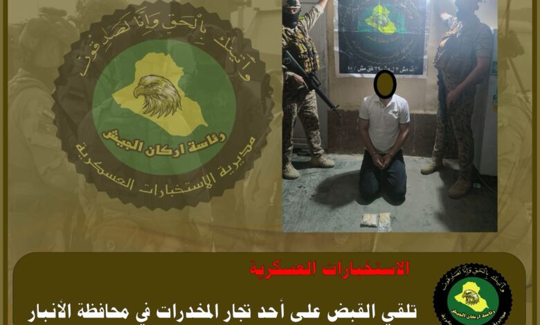 بكمينٍ محكم … الاستخبارات العسكرية تلقي القبض على أحد تجار المخدرات في محافظة الأنبار