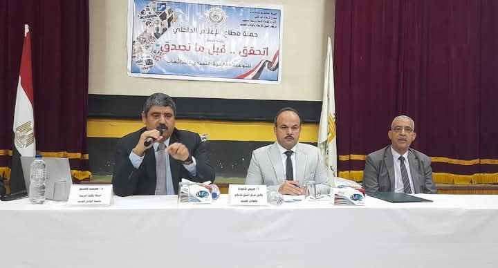 شهدت محافظة الوادي الجديد لقاءا اعلاميا حول ” الأمن الفكرى والتصدى للشائعات ” حيث يتجدد اللقاء ونشاط اعلامى اخر ضمن حملة قطاع الاعلام الداخلى بالهيئة العامة للاستعلامات بقيادة د/ احمد يحى رئيس القطاع وبرعاية د/ ضياء رشوان رئيس الهيئة تحت شعار (اتحقق …قبل ما تصدق) بهدف التصدى للشائعات التى تحاول زعزعة الامن القومى المصرى