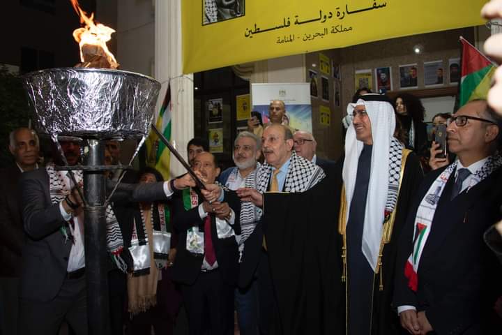 واوقدت شعلة الانطلاقة بحضور، القائم بأعمال وكيل وزارة الخارجية للشؤون القنصلية والإدارية، السفير خليل يعقوب الخياط، وسفراء الدول العربية الشقيقة وعدد من سفراء الدول الصديقة، وشخصيات رسمية واعتبارية وعدد من أعضاء مجلسي النواب والشورى، وممثلين عن الجمعيات والمجالس البحرينية وأبناء الجالية الفلسطينية.