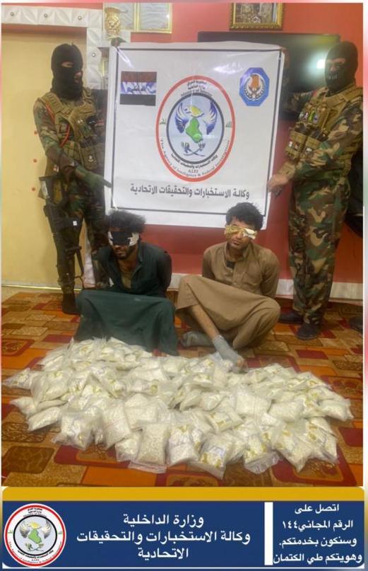 استمرارا لعملياتها الأمنية من أجل مكافحة المخدرات والقضاء على هذه الافة الخطرة على مجتمعنا، إذ تمكنت وكالة الاستخبارات والتحقيقات الاتحادية في وزارة الداخلية وبكمين محكم من القاء القبض على اثنين من تجار المخدرات في صحراء السماوة ضمن محافظة المثنى وبحوزتهما