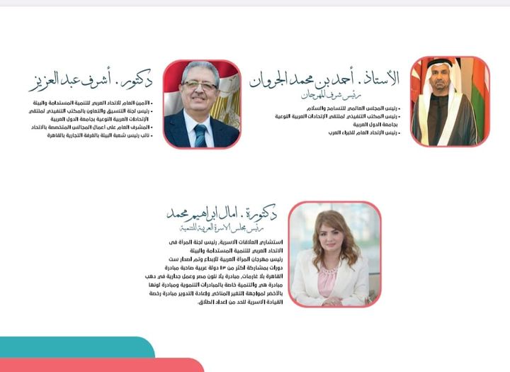 تحت رعاية جامعة الدول العربية ينظم الاتحاد العربي للتنمية المستدامة والبيئة بالتعاون مع الاتحاد العام للخبراء العرب ومجلس الاسرة العربية للتنمية منتدى عربي تحت عنوان “استدامة دور الأسرة في تنمية المجتمع” يومي ١٥ – ١٦ مايو ٢٠٢٣ بمقر الأمانة العامة لجامعة الدول العربية بالقاهرة.