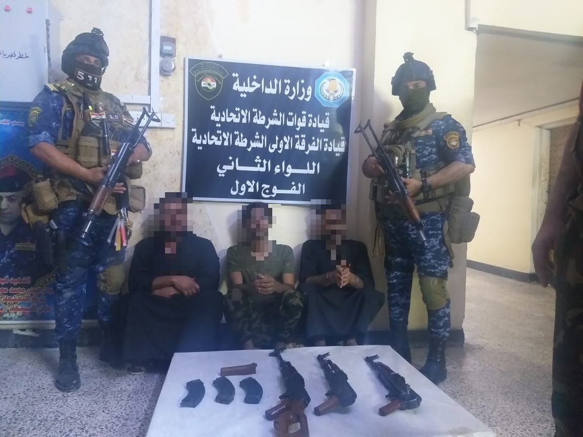 وفي هذا السياق ألقت قوة من اللواء الثاني شرطة اتحادية القبض على ثلاثة متهمين بــ (الدكة العشائرية) ومصادرة السلاح الذي بحوزتهم، واعتقال متهم آخر بالتهديد في منطقة الشماعية في الرصافة