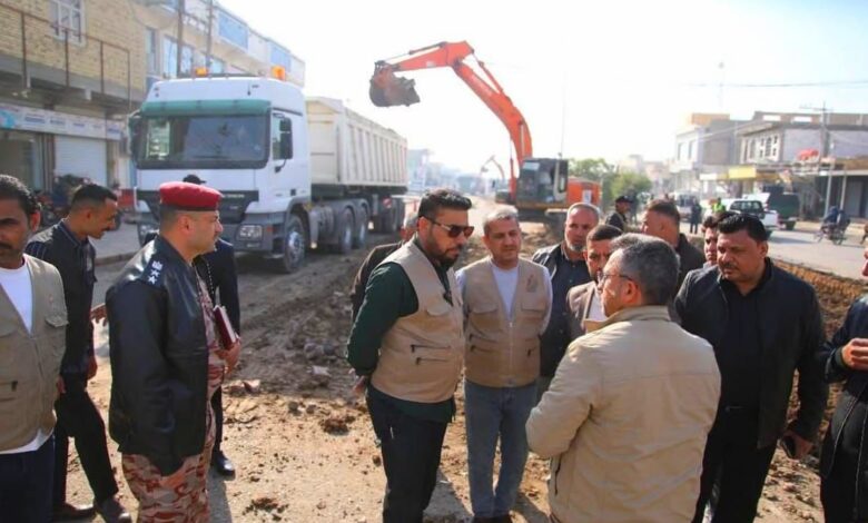 محافظ ميسان يتفقد مشاريع توسعة الشوارع والأرصفة في منطقة أبو رمانة.
