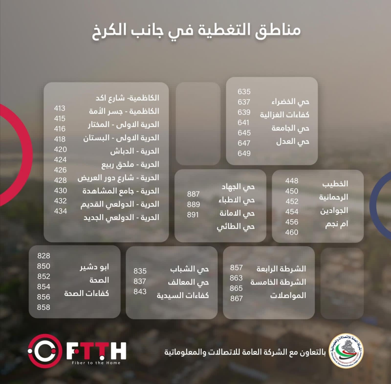 الشركة العامة للاتصالات والمعلوماتية وبالتعاون مع شركة سوبر سيل المشغلة لمشروع الكابل الضوئي في عدد من مناطق بغداد (الكرخ ).
