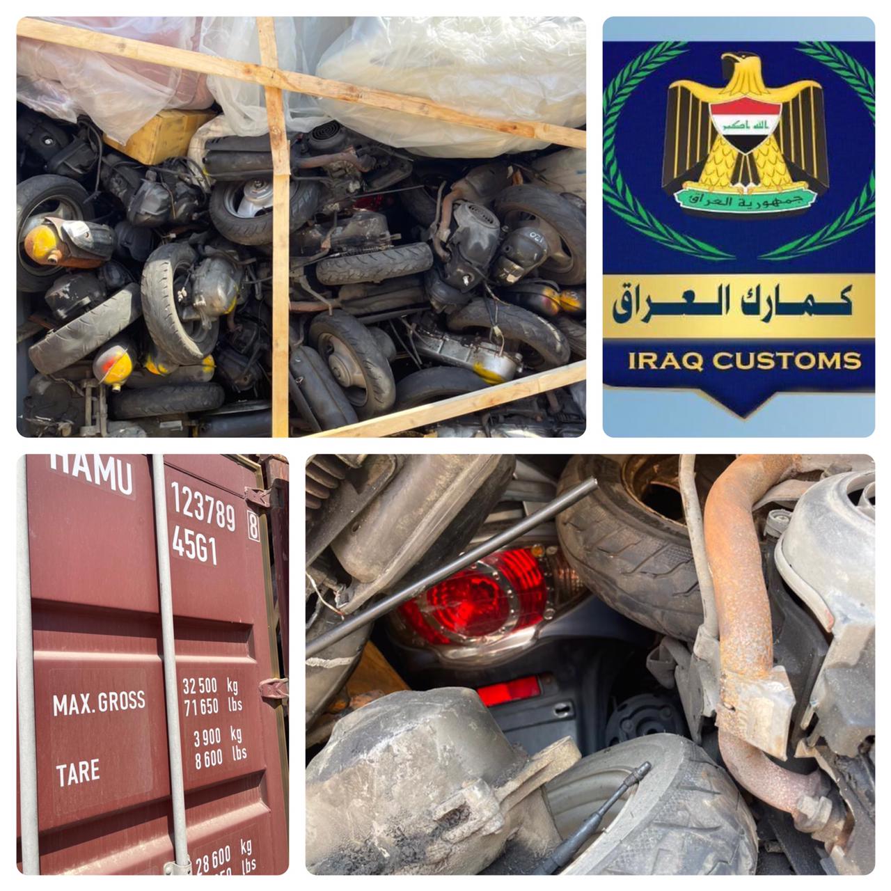 الكمارك ،،، ضبط حاويتين تحتوي دراجات نارية مخالفة في مركز كمرك ام قصر الشمالي
