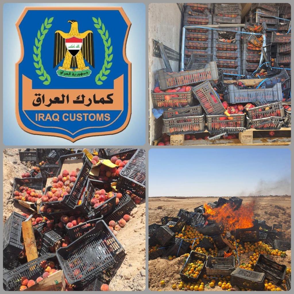 اعلنت الهيئة العامة للكمارك اليوم السبت عن اتلاف مواد غذائية من قبل مركز كمرك القائم الحدودي ( فواكه ) غير صالحة للاستهلاك البشري.