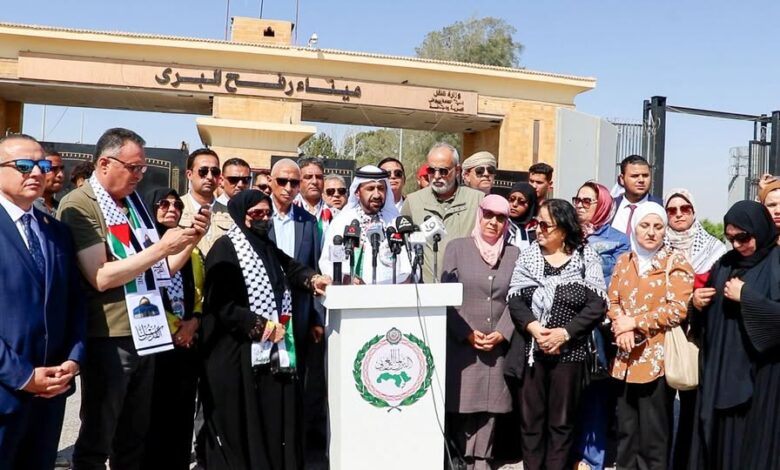 وأشاد اليماحي بالدور المصري قائلًا: “ما لمسناه اليوم من تسهيلات مصرية ورعاية إنسانية، هو دليل قاطع على صدق الموقف المصري وعمق انتمائه العروبي، فمصر كانت وما تزال درع العروبة وحامية القضية الفلسطينية”.