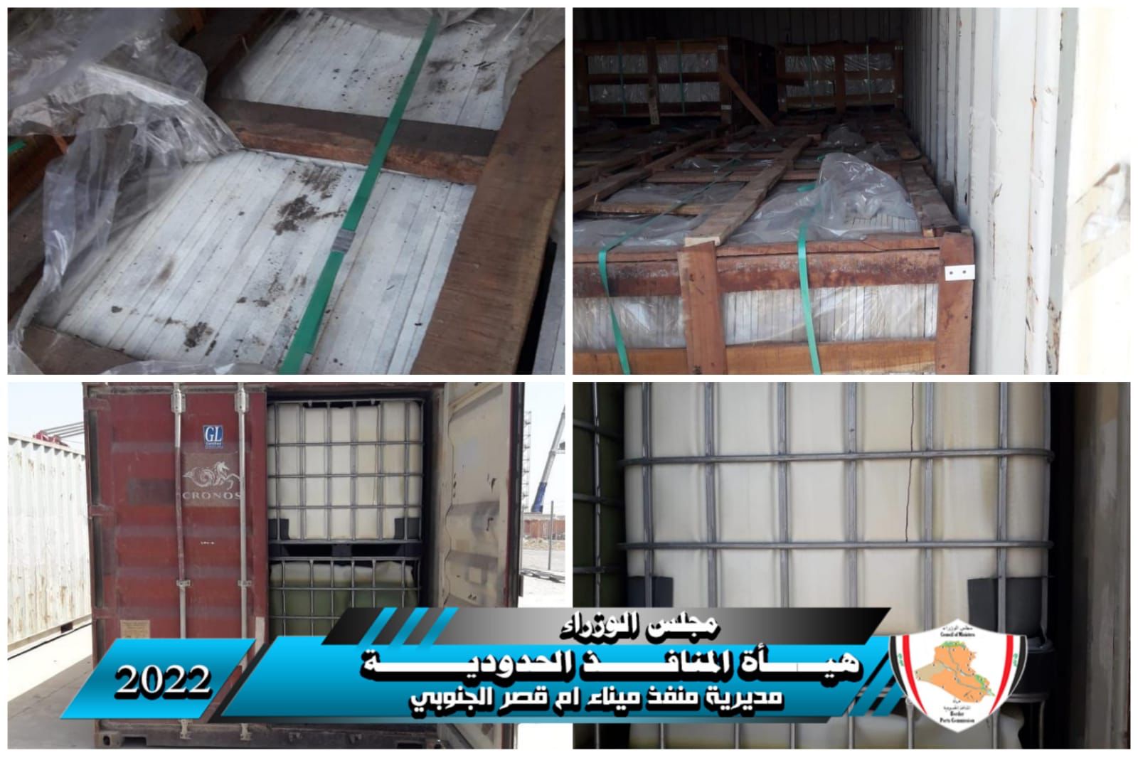 تمكنت هيأة المنافذ الحدودية بجهود ومتابعة ميدانية لكافة البضائع وبتنسيق العمل وتبادل المعلومات مع مركز شرطة كمرك خور عبدالله في منفذ ميناء أم قصر الجنوبي من ضبط ثلاثة حاويات واحدة تحتوي على مادة كيميائية خطرة ( الثنر ) وحاويتين تحتوي مادة (الكرانيت) جميع المواد مخالفة لشروط وضوابط الاستيراد كونها تجاوزت المدة القانونية المسموحة على بقائها في الميناء دون مراجعة اصحاب العلاقة .