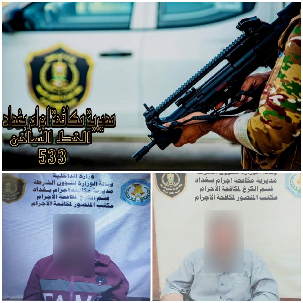 إلى ذلك نفذت مفارز مديرية مكافحة اجرام بغداد أوامر قبض بحق عدد من المتهمين لقيامهم بسرقة مبالغ مالية ومنازل سكنية ومحلات تجارية ودراجات نارية مختلفة، وضبط عجلات مطلوبة ومتهمين آخرين مطلوبين بقضايا جنائية مختلفة في جانبي الكرخ والرصافة.