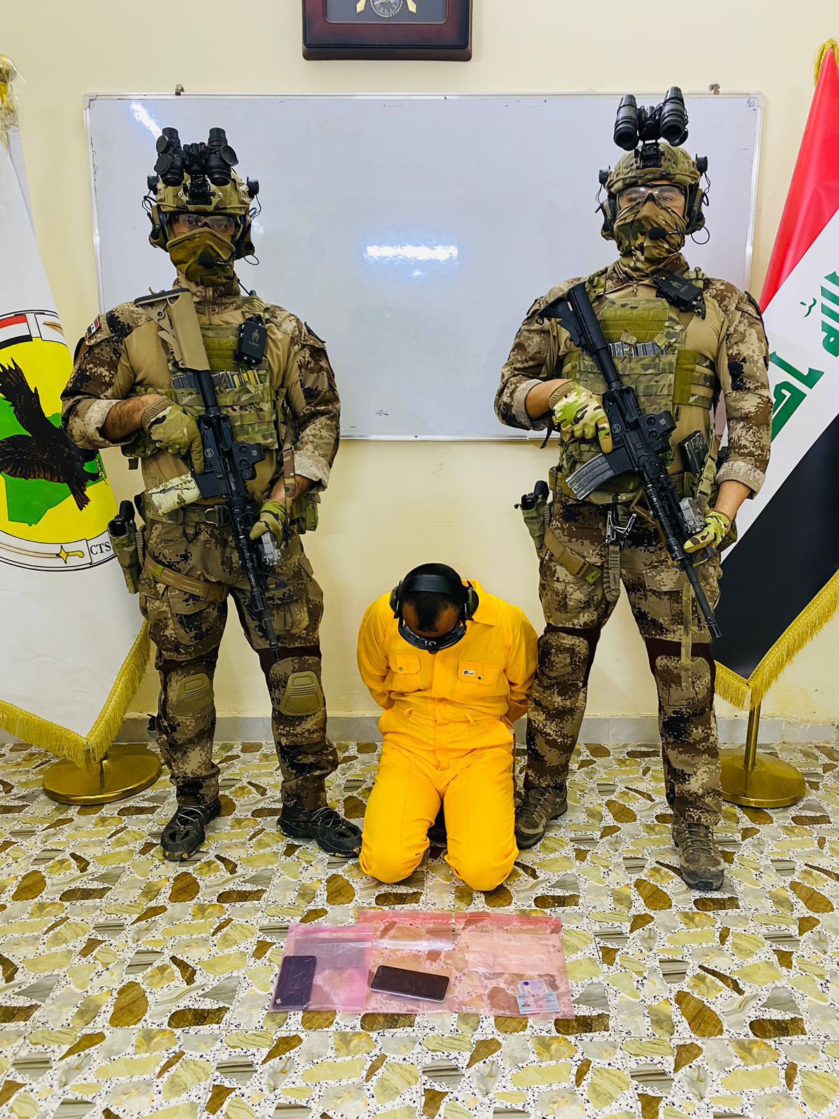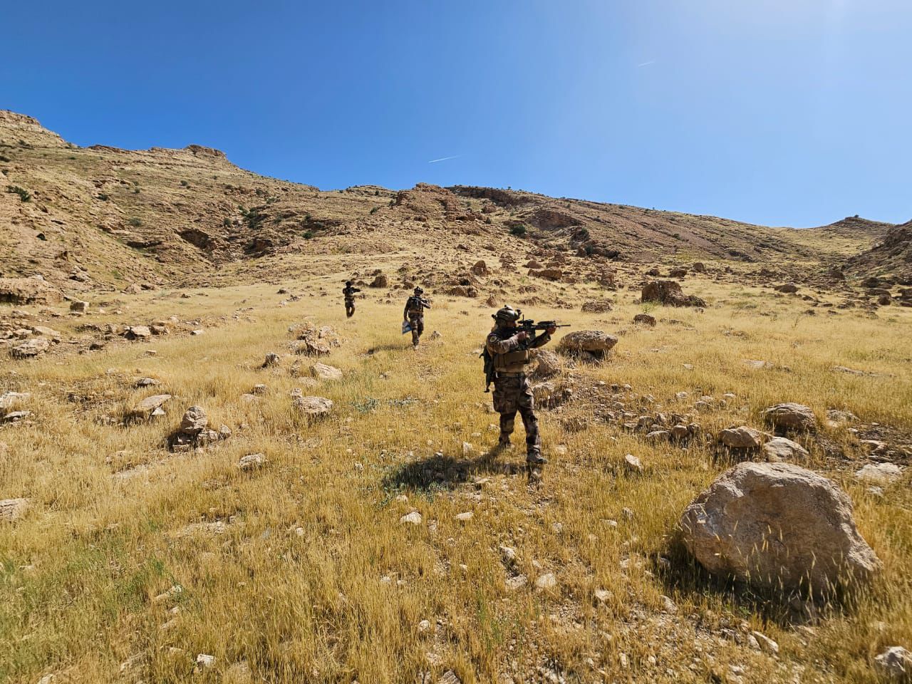 جهاز مكافحة الارهاب يلقي القبض على ثلاثة ارهابيين ويفتش ويفجر (١٠) كهوف ومضافات.